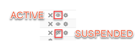 - Suspend/Activate a user - Select the Eye icon, in the edit column