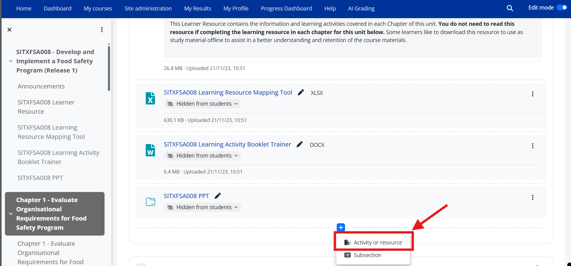 | Availability | The availability option permits students to view and access assignments and resources, there are two options available: • Show on course page • Hide from students |