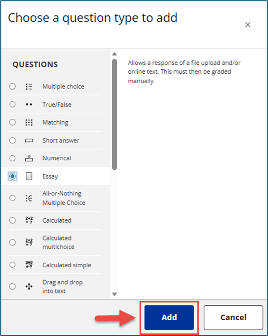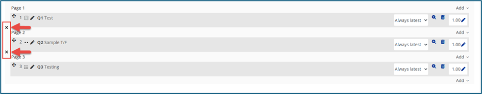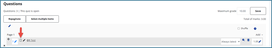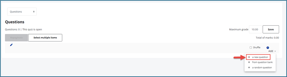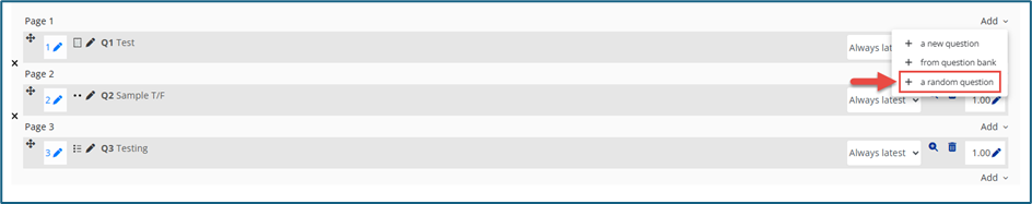 2. Random question - If your question bank contains questions, you can add random questions by selecting + a random question.