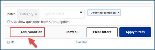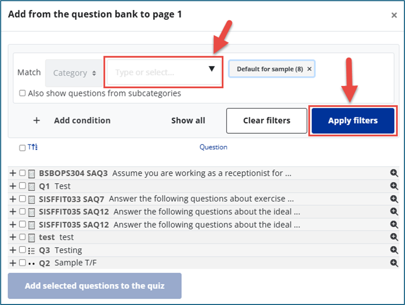To view questions from other categories, select the category and click Apply filters.