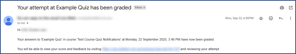 Once the steps above are completed, students should start receiving notifications about their assessments when they are manually graded. For reference, here’s an example notification: