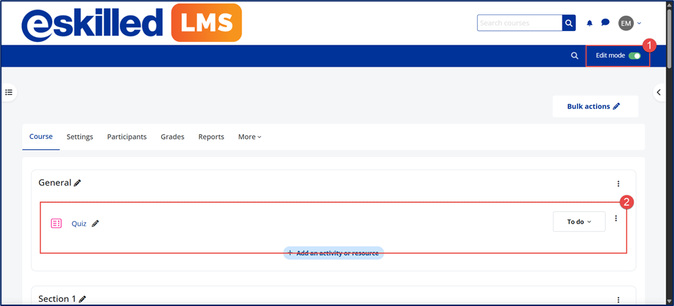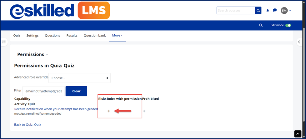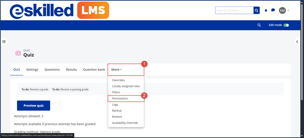 1. Open the course where the assessment is located and make sure Edit mode is enabled. Then open the assessment you want the notification to be sent from.