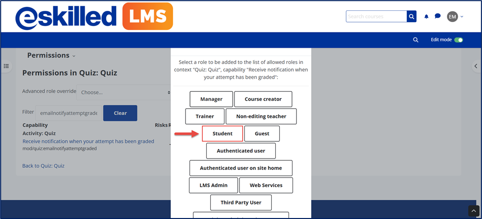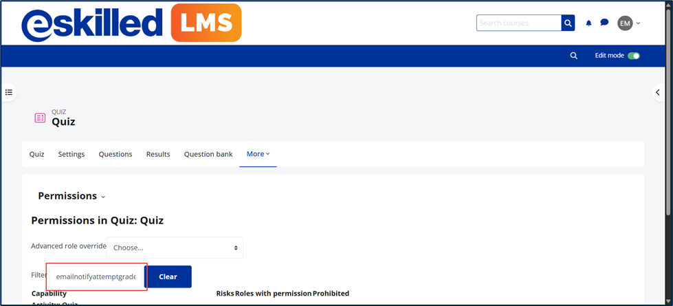 3. Under the Filter search bar, look for emailnotifyattemptgraded.