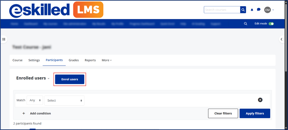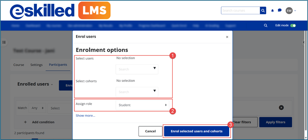 • Manager – Has full control over the course, including managing enrolments, settings, and course content.