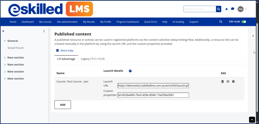 This guide covers the outbound process of publishing a course or specific activity from your LMS to an external platform using LTI Tool. Use this when you need to make your learning content available to another LMS or partner system, allowing learners to launch the content externally without a separate login, while progress and grades continue to be tracked in your LMS.