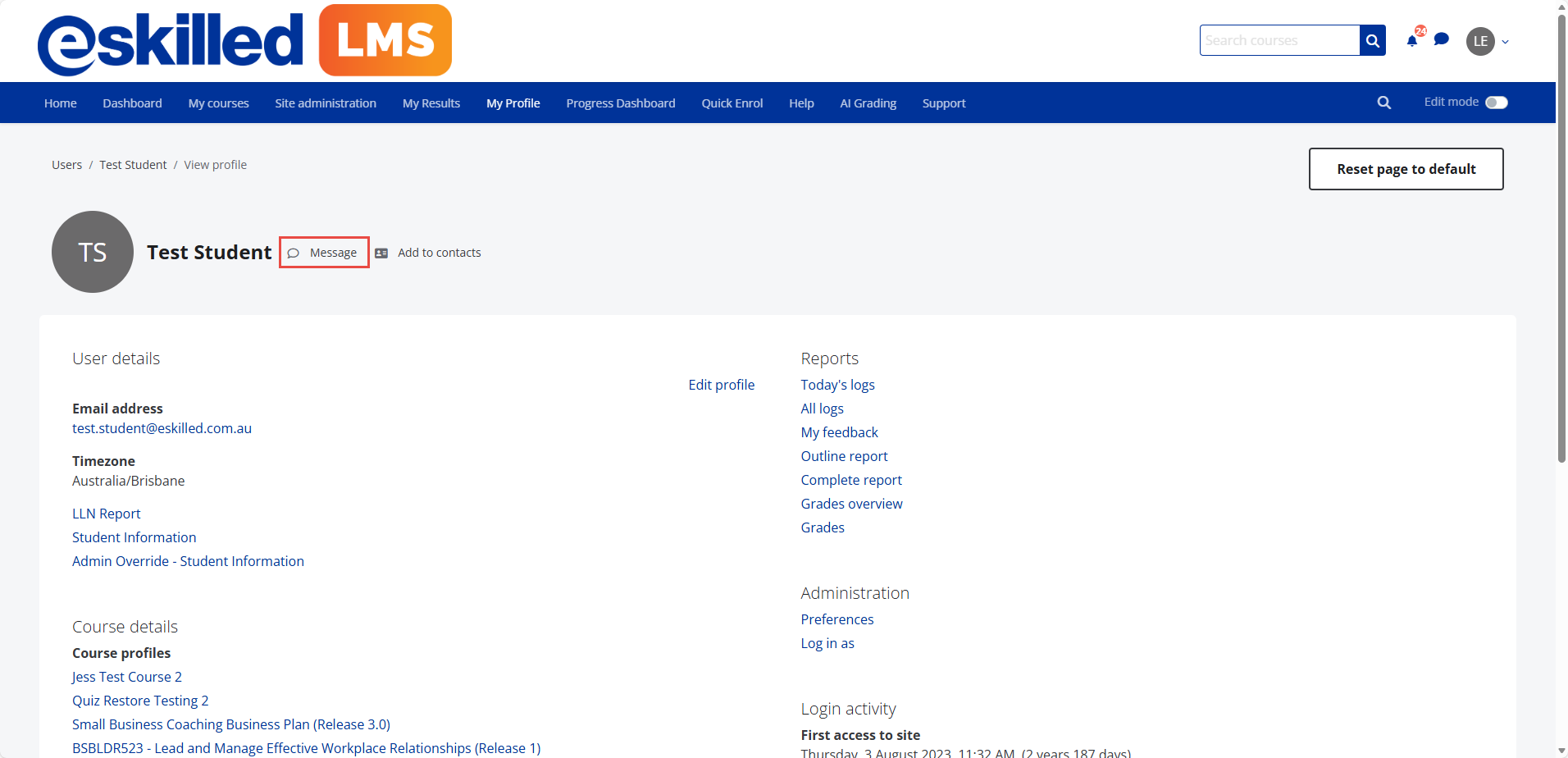 Option 1: Navigating to a user’s profile and clicking the Message buttons: