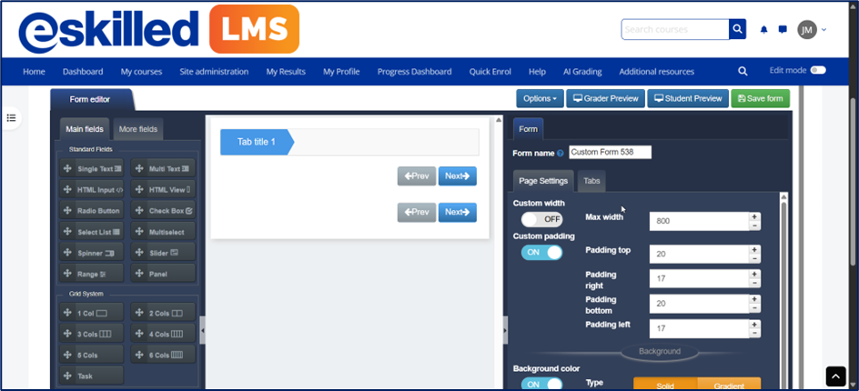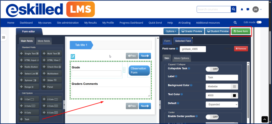 6. Please ensure that at least one Task field (found under the Grid System) is added, as this is a required component when creating an assessment form. Each Task field is equivalent to 1 point.