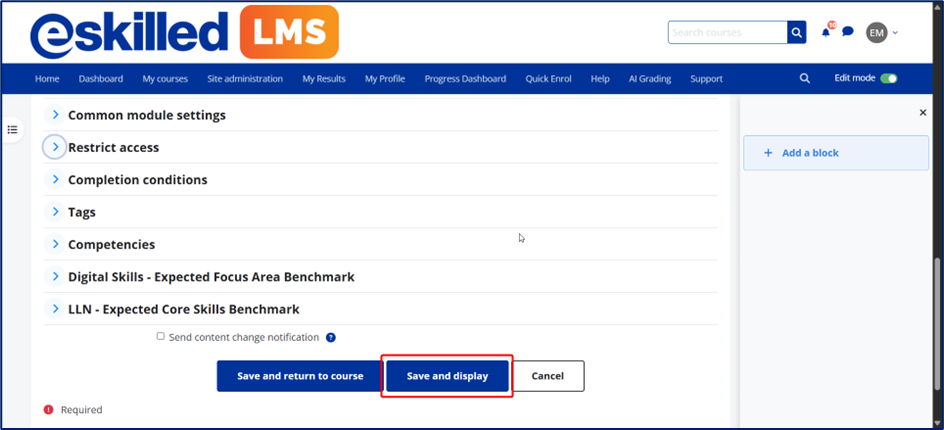 4. When you are satisfied with the restrictions you have set, scroll to the bottom of the page and click the Save and display button.