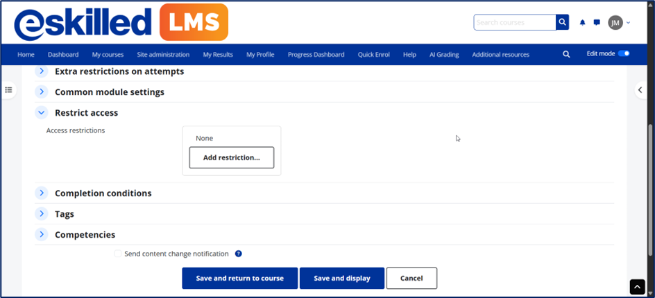 By applying restrictions effectively, you can ensure learners access content in the right sequence, improving engagement and supporting better learning outcomes across your course.