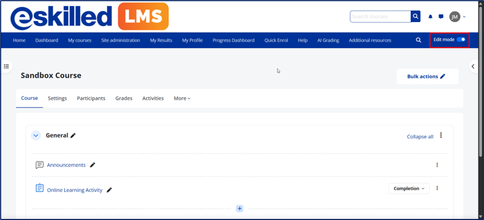 1. Go to the course where the activity can be found and enable Edit mode.